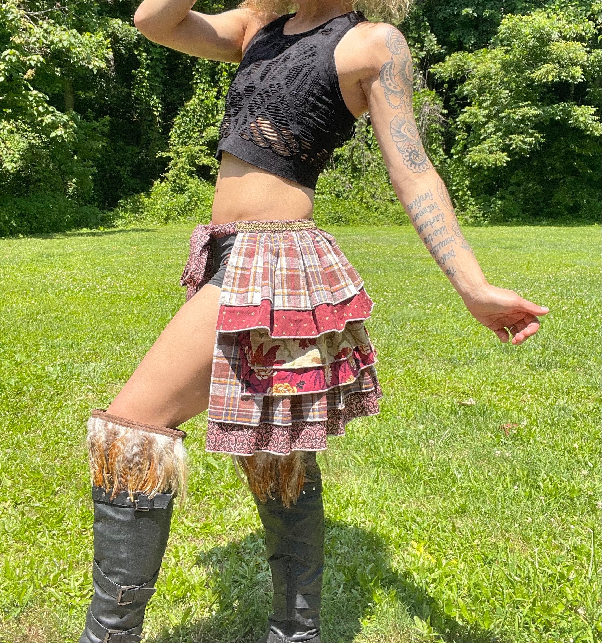 Layered fabric bustle skirt with 6 layers of ruffles.