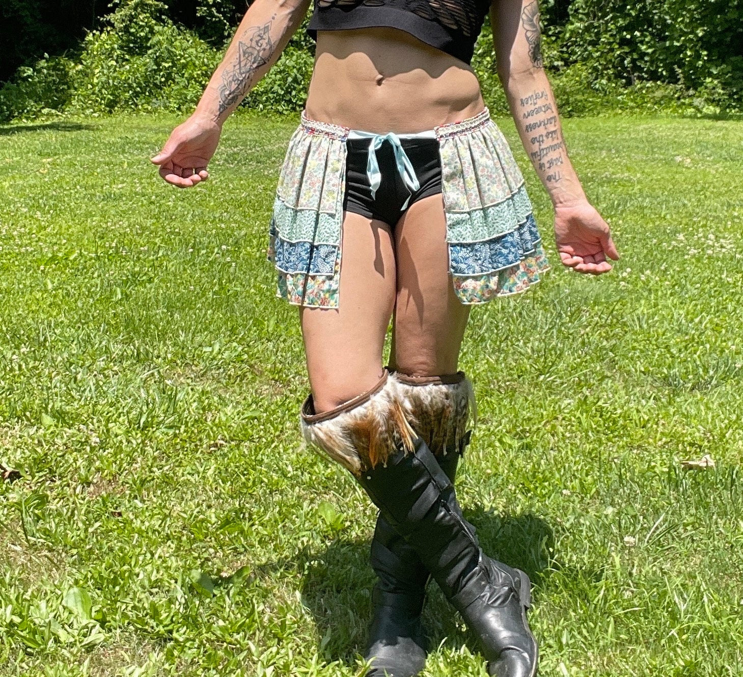 Layered fabric bustle skirt with 4 layers of ruffles.