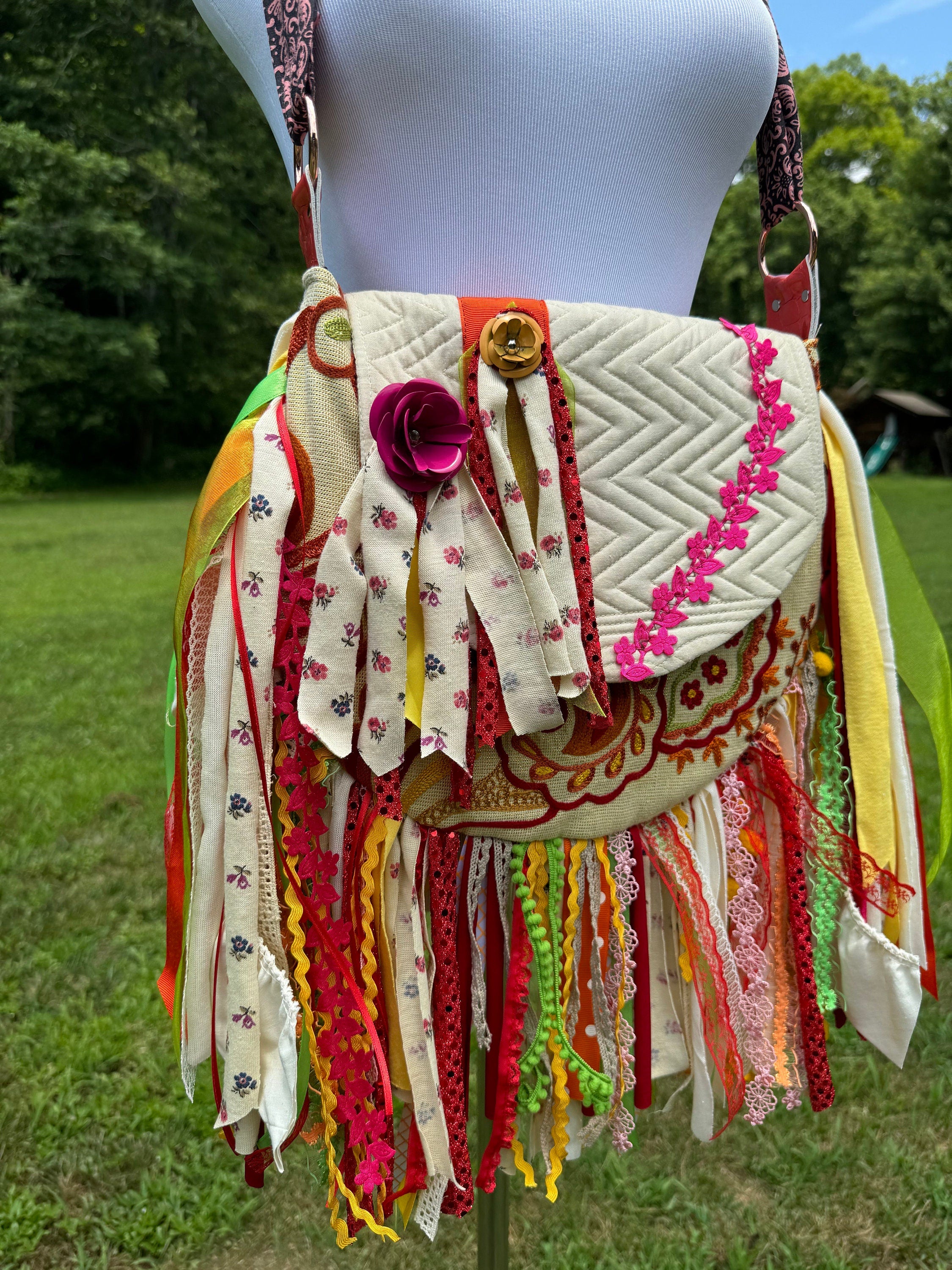 Embellished Brightly Colored Lace Fringe Purse - Boho Handbag, Hippie Style with a Chic Twist