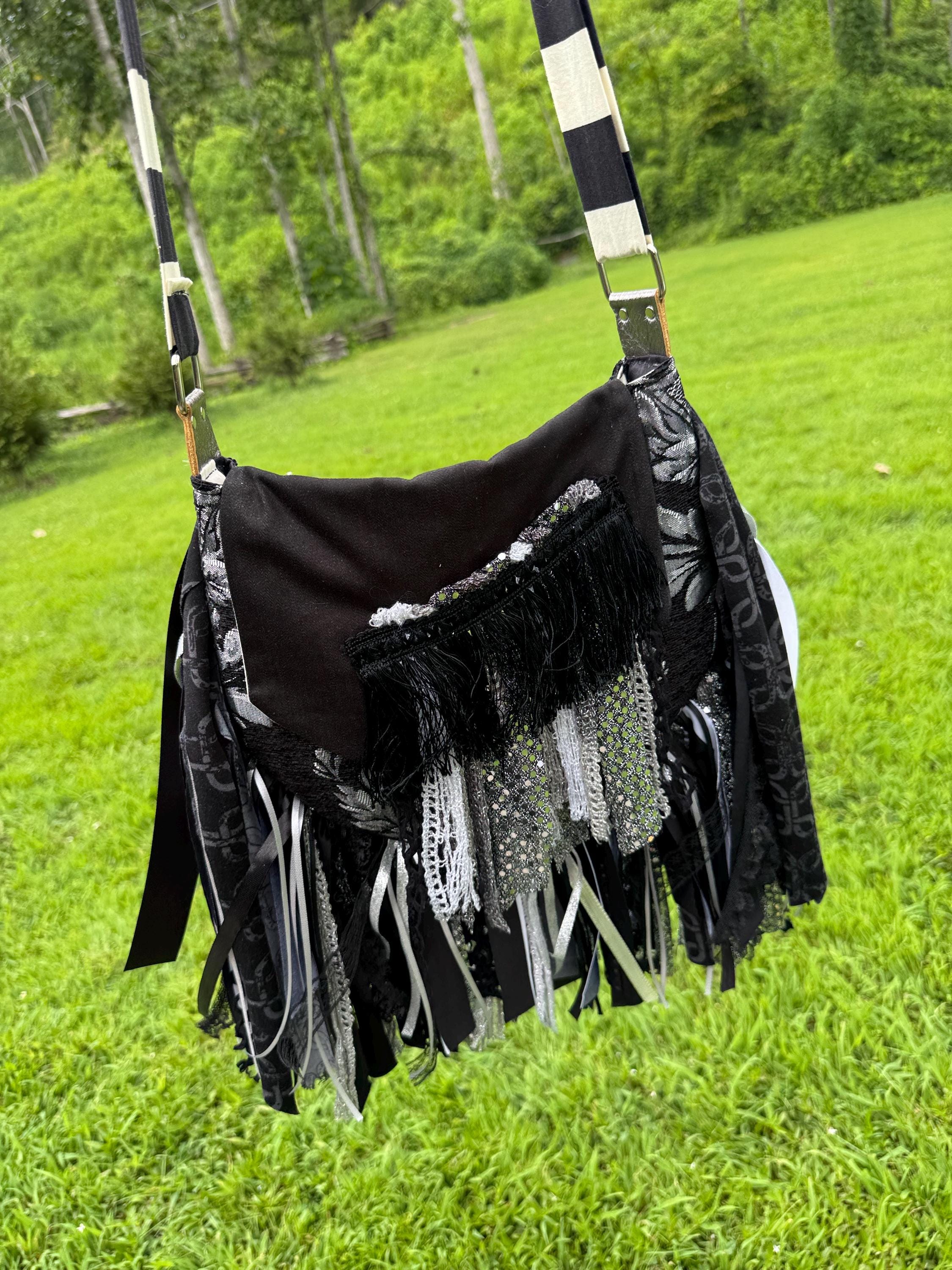 Embellished Gothic Lace Fringe Purse - Boho Handbag, Vintage Style with a Dark Twist