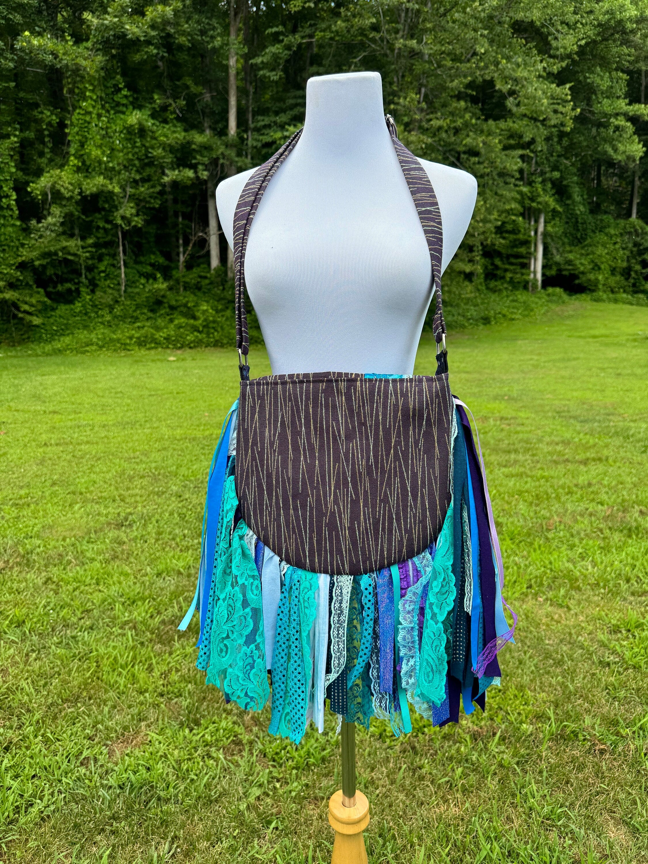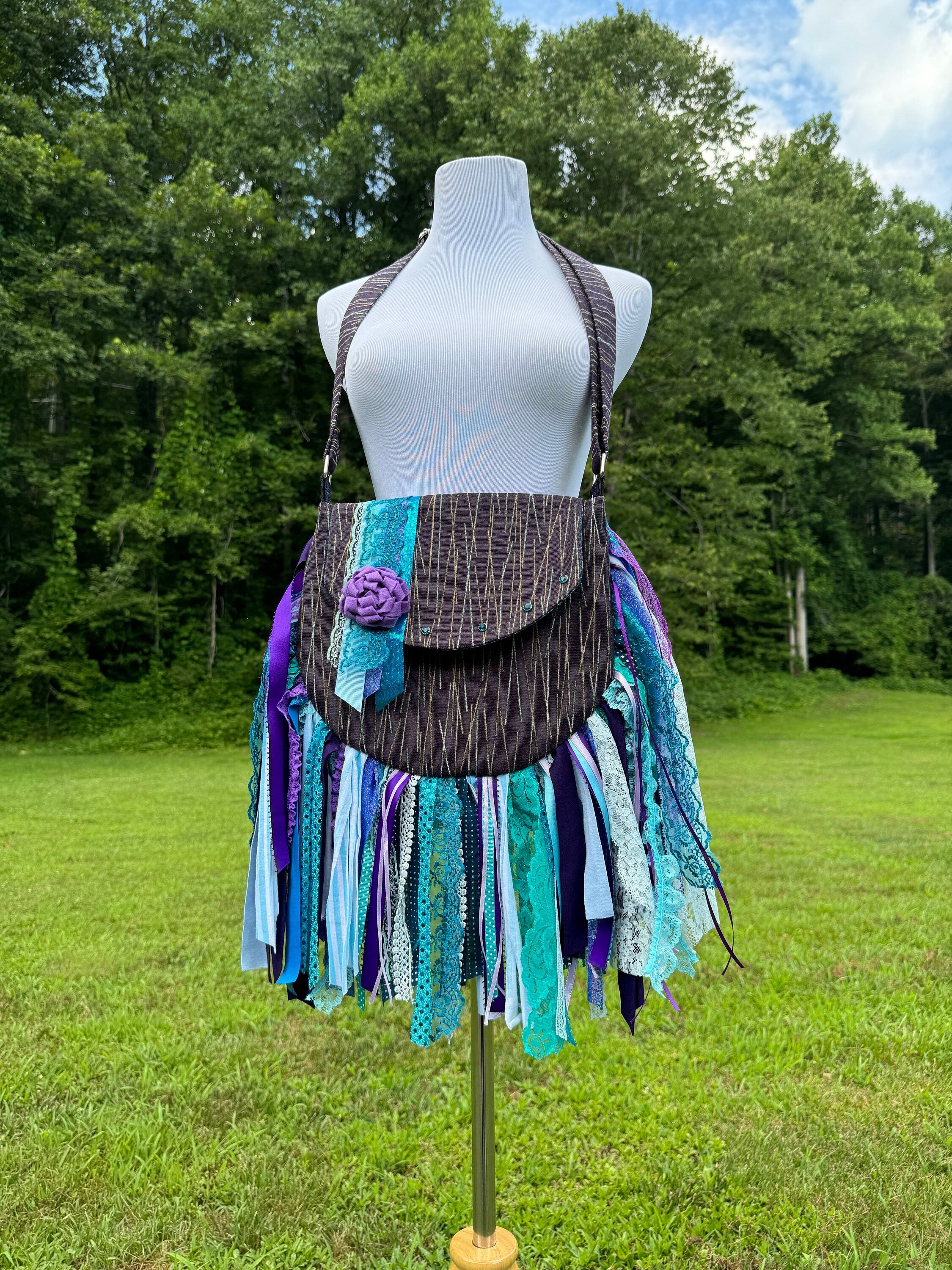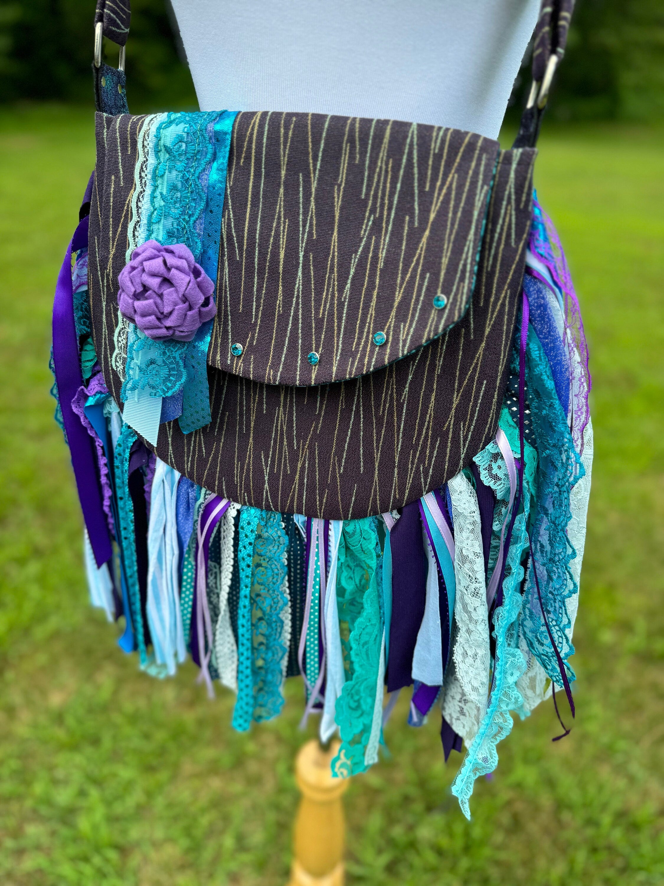 Embellished Purple and Teal Lace Fringe Purse - Boho Handbag, Hippie Style with a Chic Twist