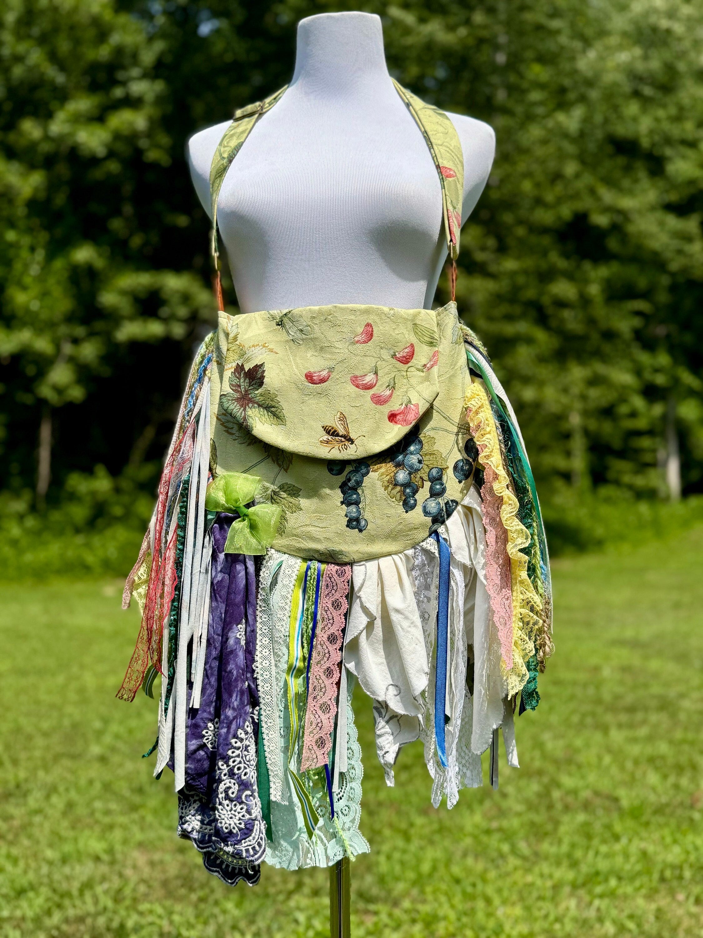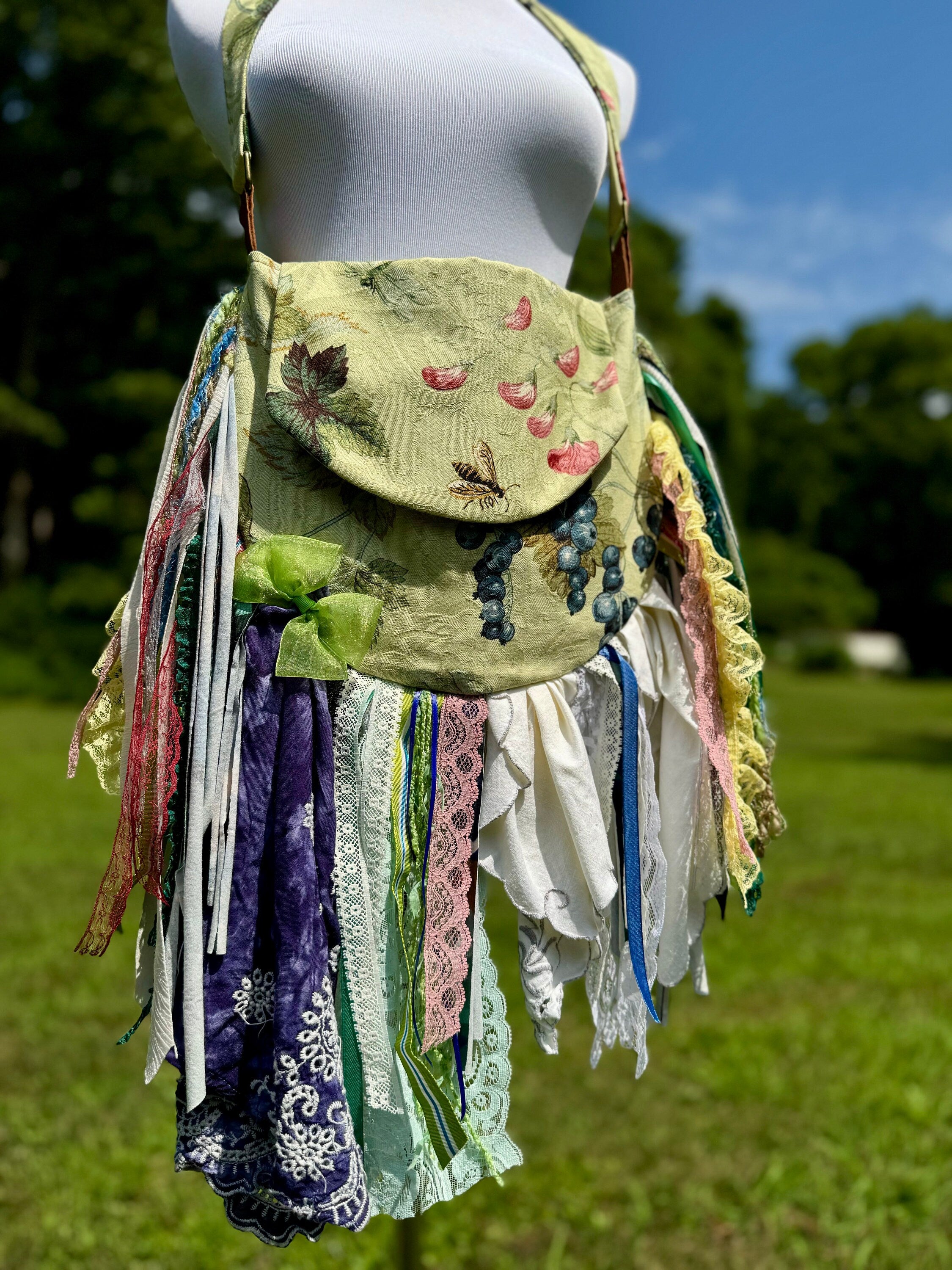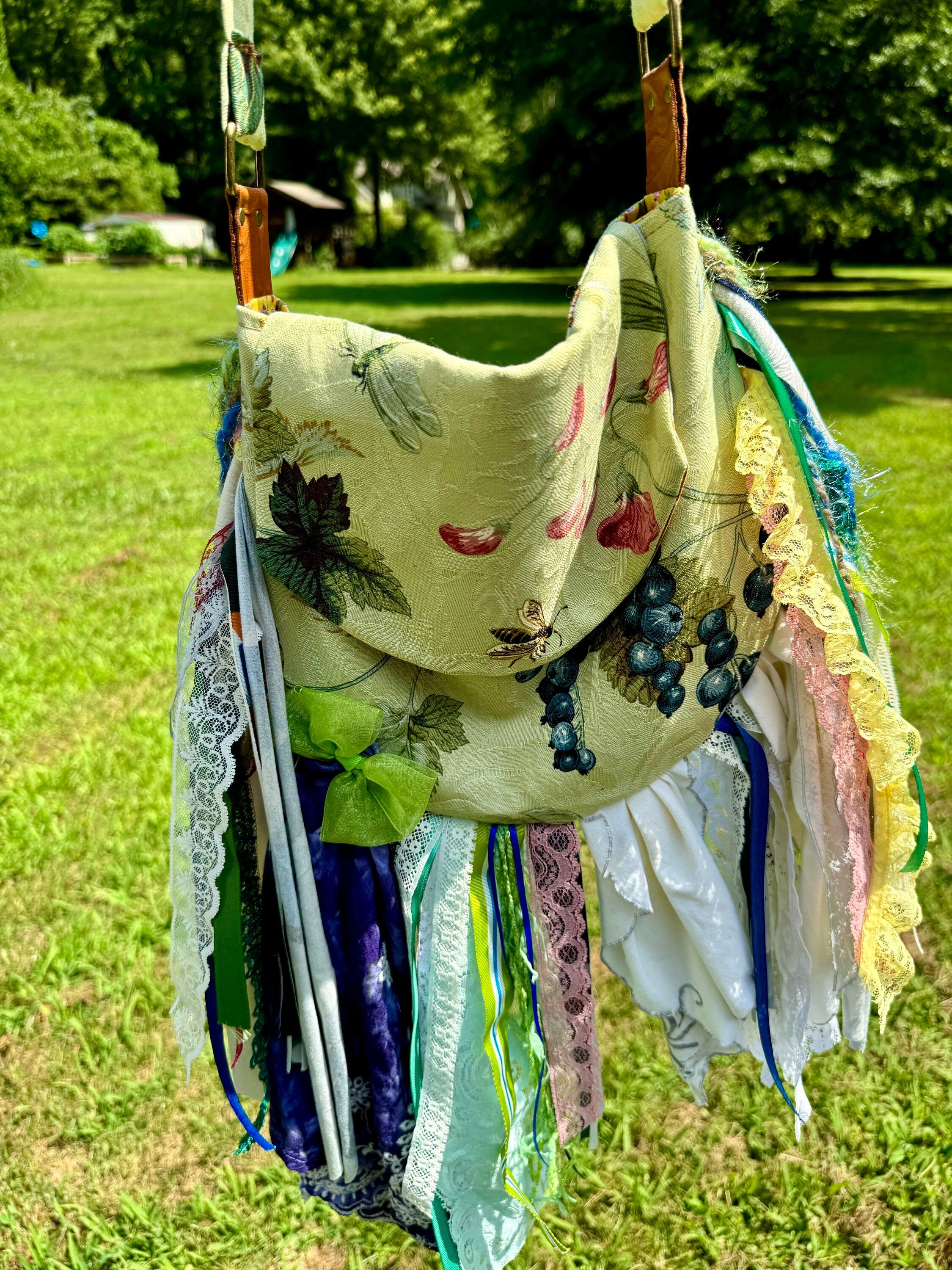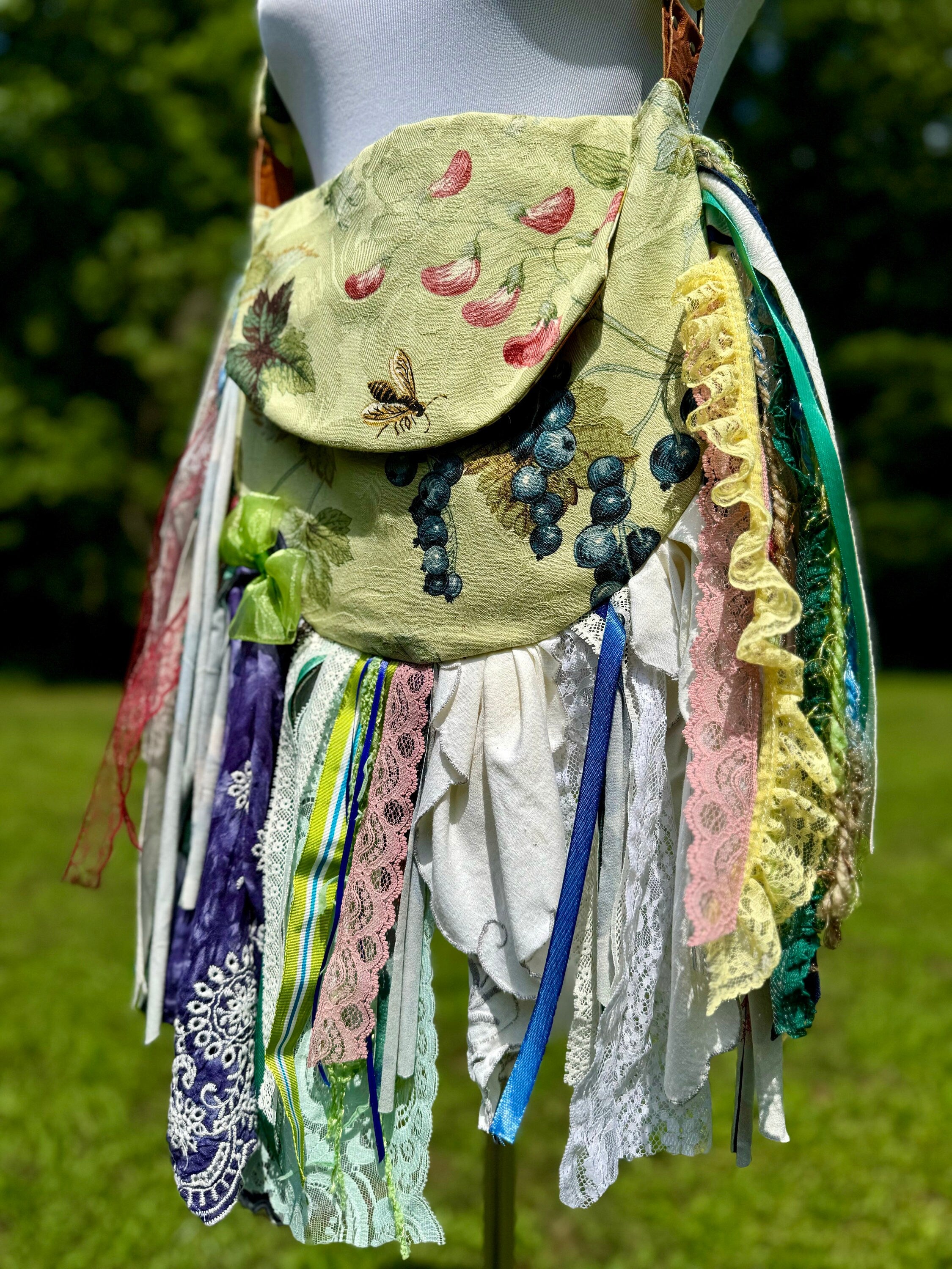 Upcycled lace fringe bag