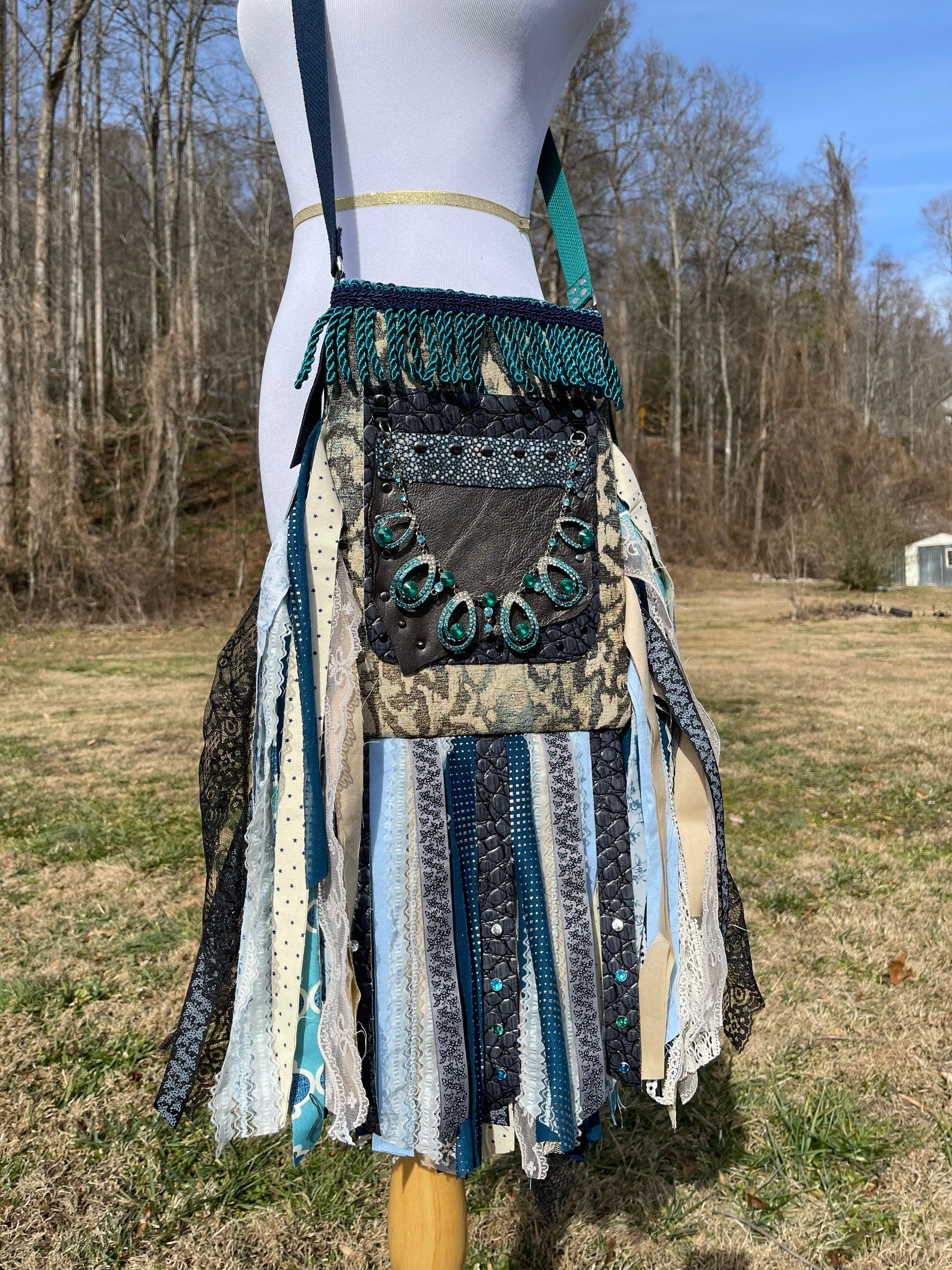 Funky Teal Green Fringe Purse, Boho Chic Embellished Bag with Vintage Vibes.