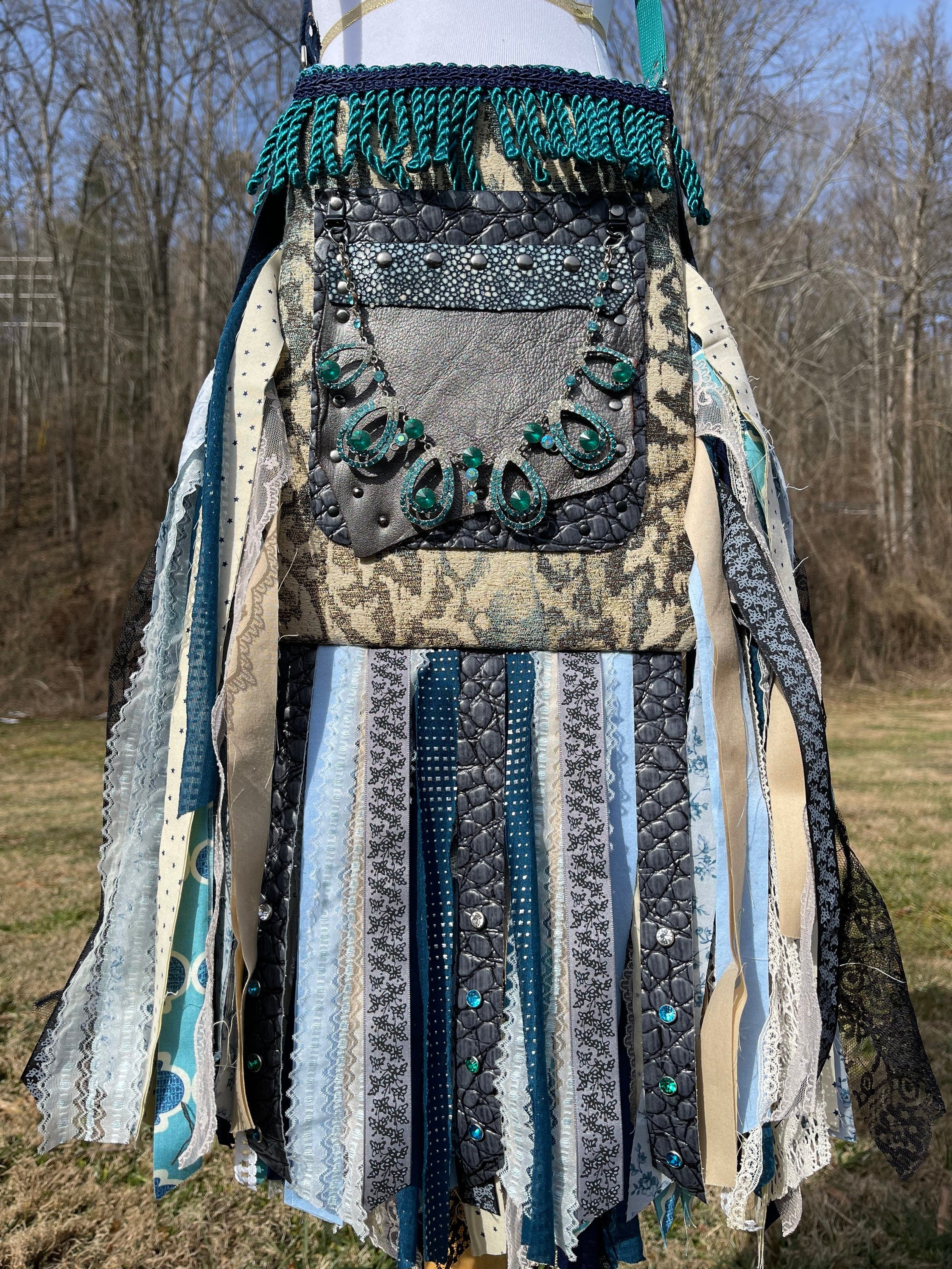 I am a craft supply hoarder, saving every scrap, bead, button, jewel you can imagine. With an overflowing studio and a brain about to explode with ideas, I've created these ultimate fringe purses. Just about everything is recycled materials, except the rivets and threads used to sew with. I use upholstery and leather scraps from mostly local stores, I hunt for belts, vintage jewelry, costume jewelry and fabrics from local shops and some Esty sellers. I deconstruct broken jewelry that would otherwise be garbage to some and make it into something new all over again.