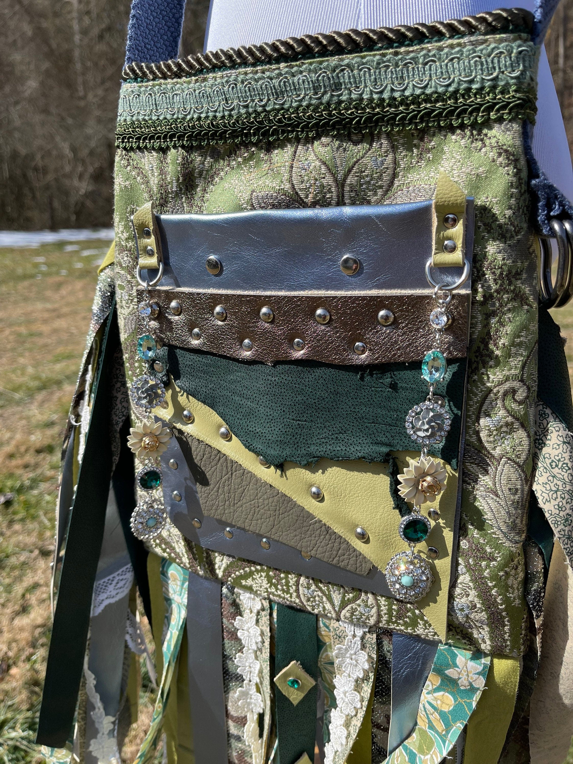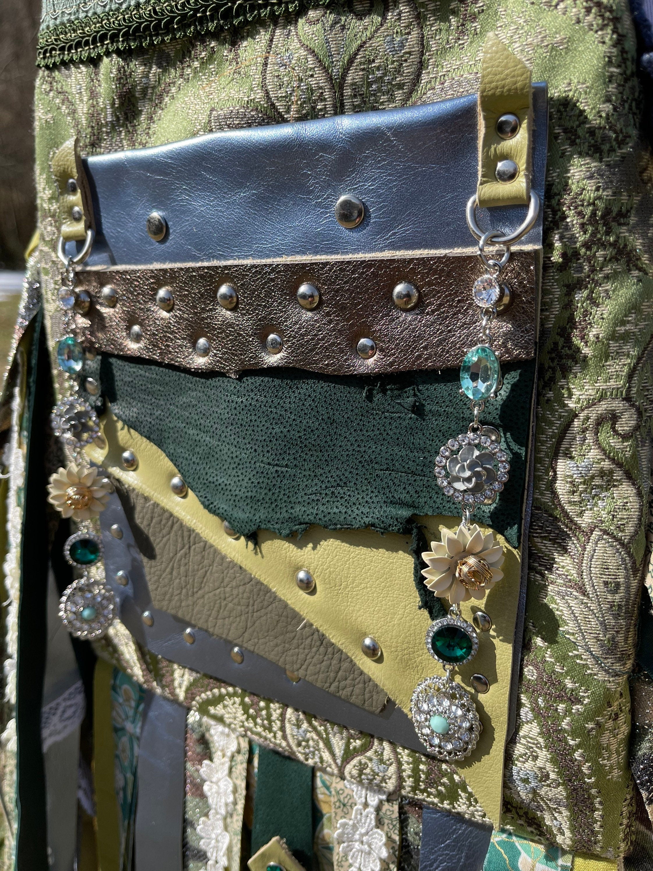 Handmade out of recycled leather scraps, recycled fabrics, vintage jewelry, deconstructed costume jewelry, belts, and sooooooo much more.