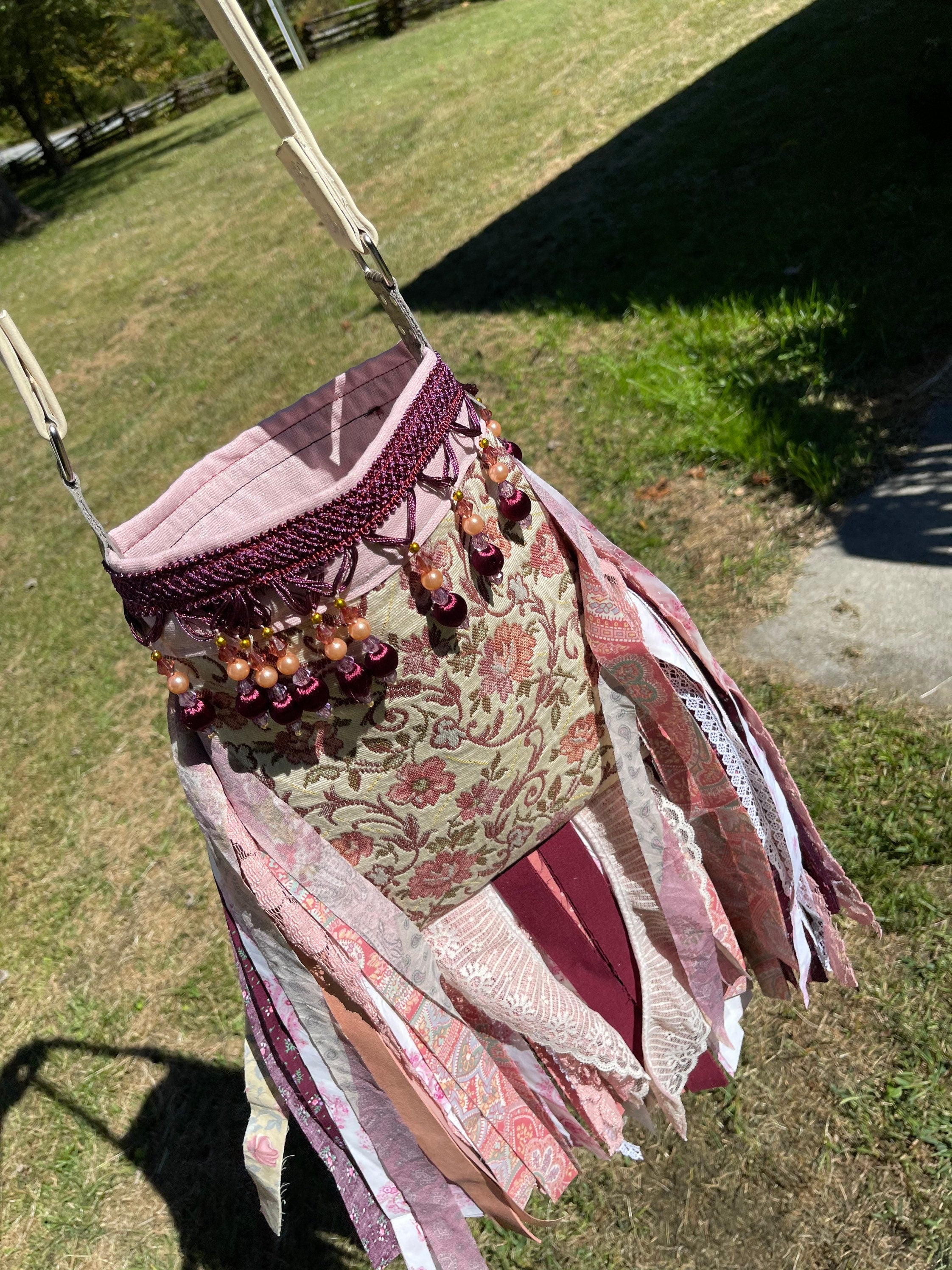 Pink Flower Fringe Purse, Festival Fringe Bag, Hippie Handbag, Boho Chic Embellished purse