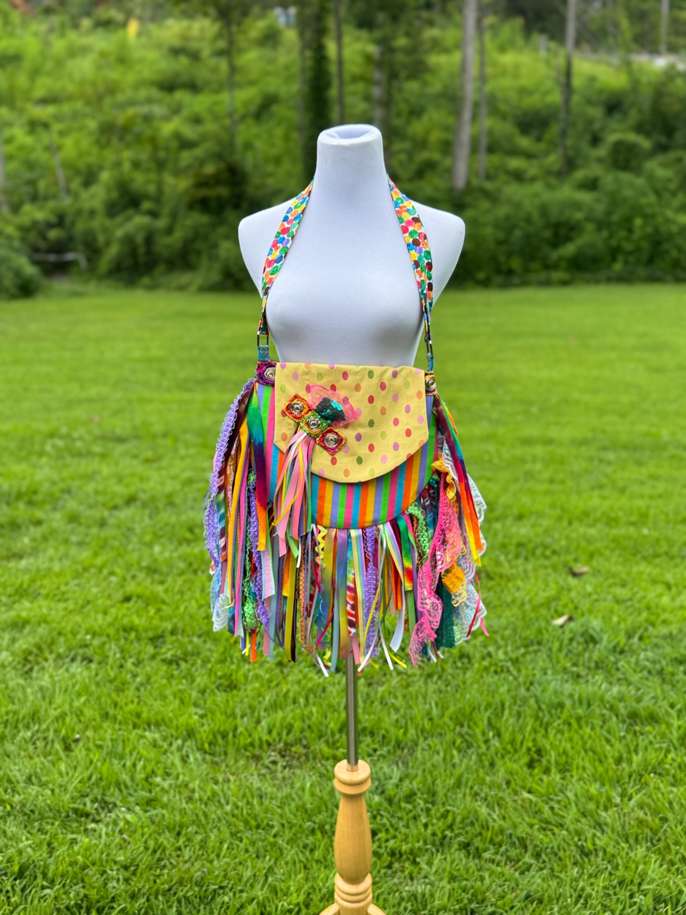 Rainbow Lace Fringe Purse with Embellishments - A Boho-Chic Handbag, Perfect for a Hippie Style with a Modern Twist