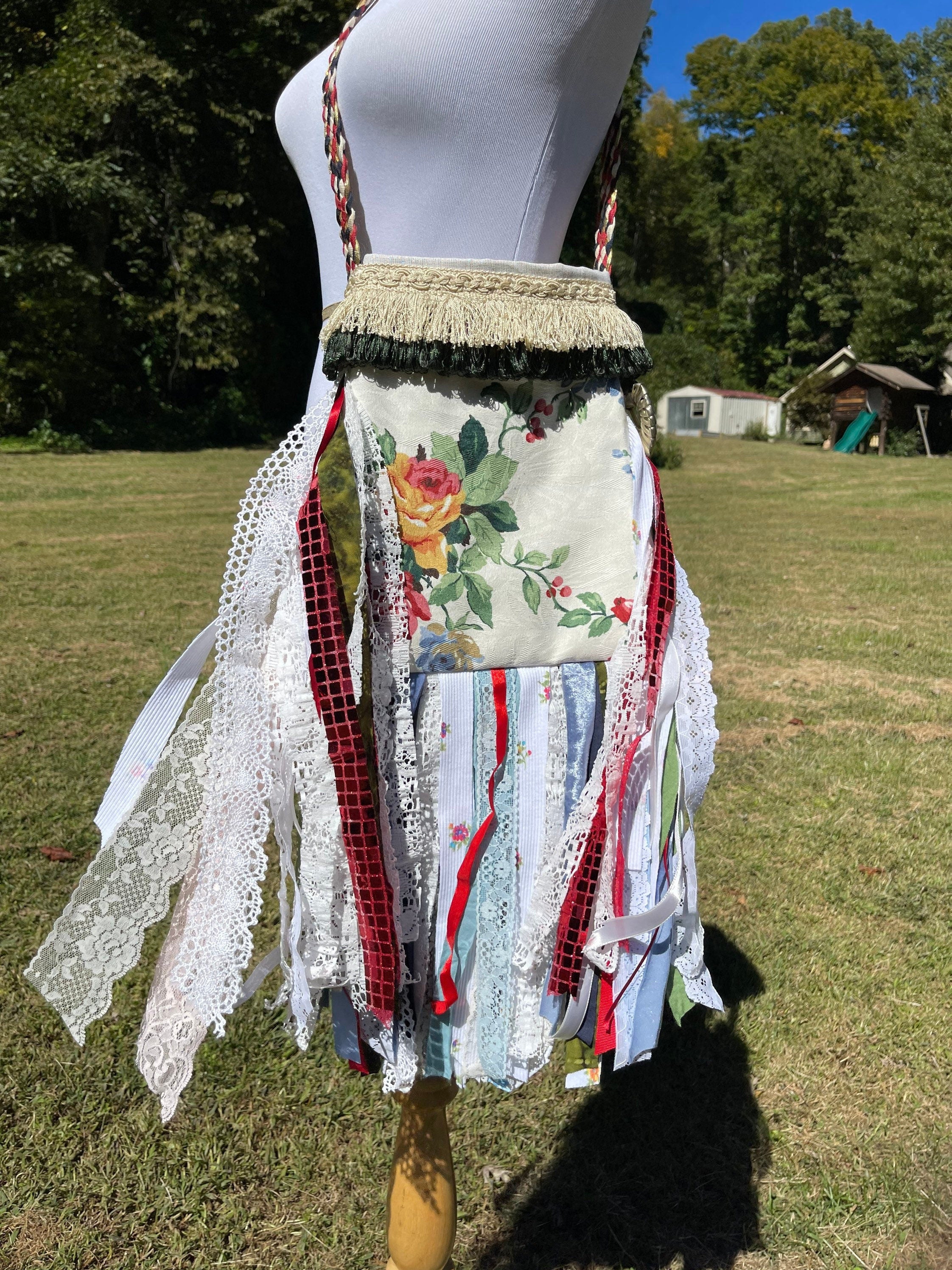 Red and Green Fringe Purse, Festival Fringe Bag, Hippie Handbag, Boho Chic Embellished purse
