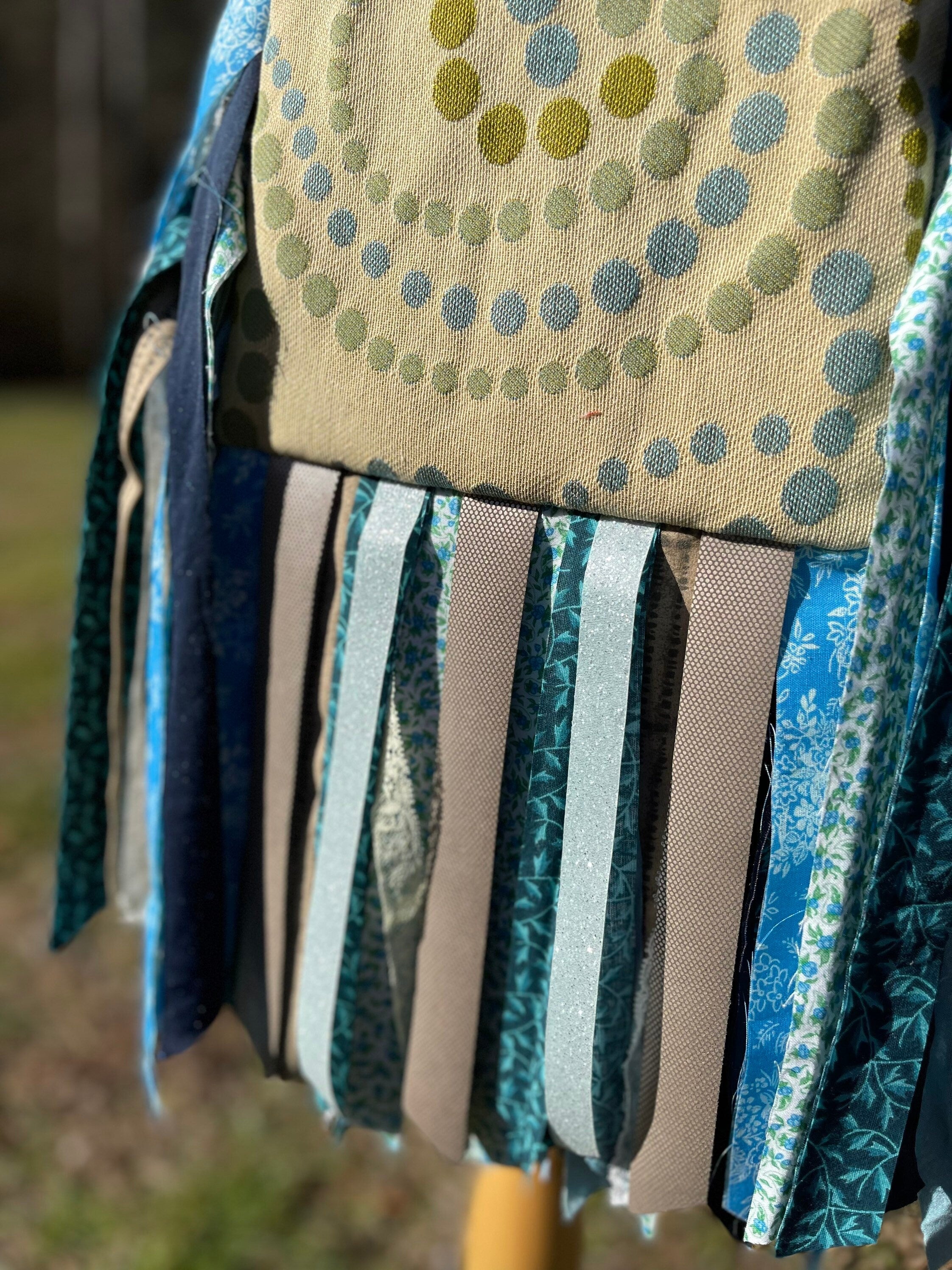 Teal and Green Bubble Fringe Purse, Festival Fringe Bag, Hippie Style Shoulder Bag, Crossbody Boho Purse