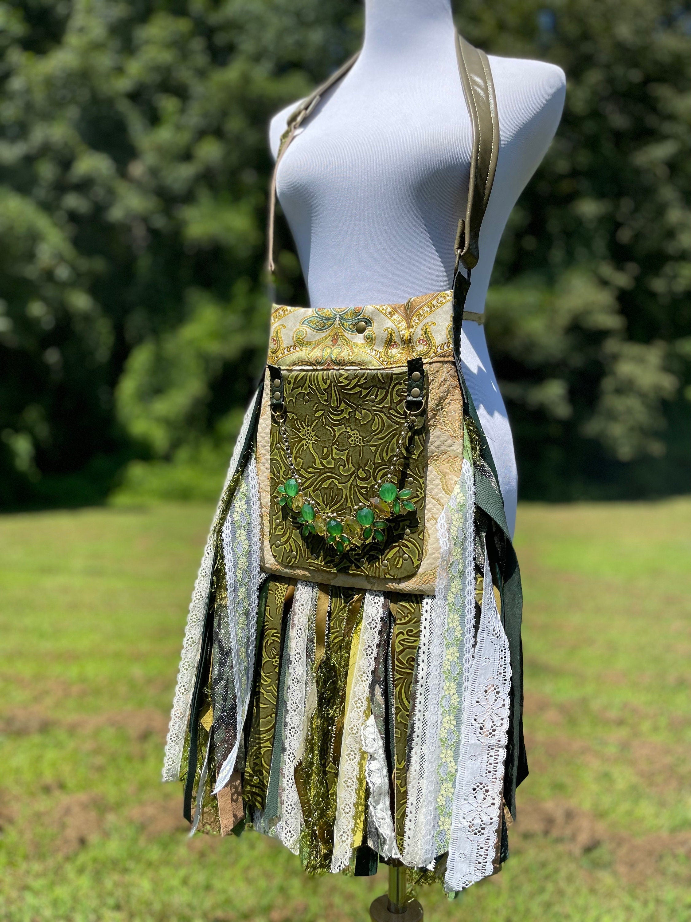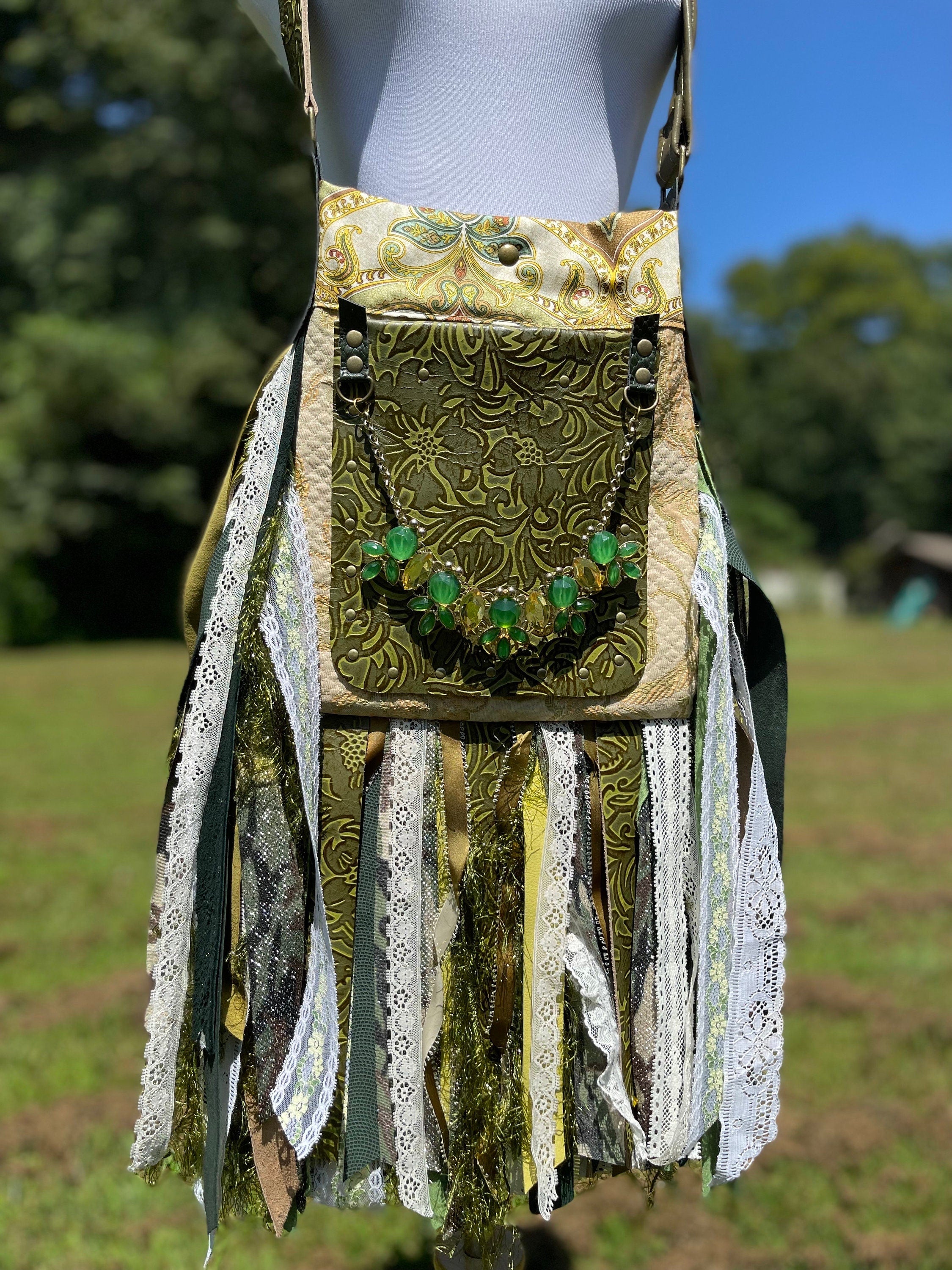 Vibrant Green Paisley Fringe Bag - Bohemian Statement Purse
