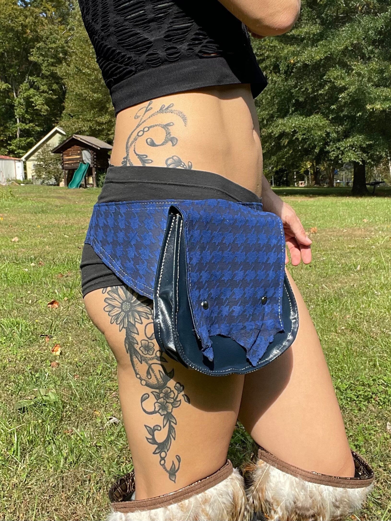 CLEARANCE, Blue Leather Pocket Belt, Boho Utility Belt, Burning Man Pocket Belt, Thigh Hip Bag