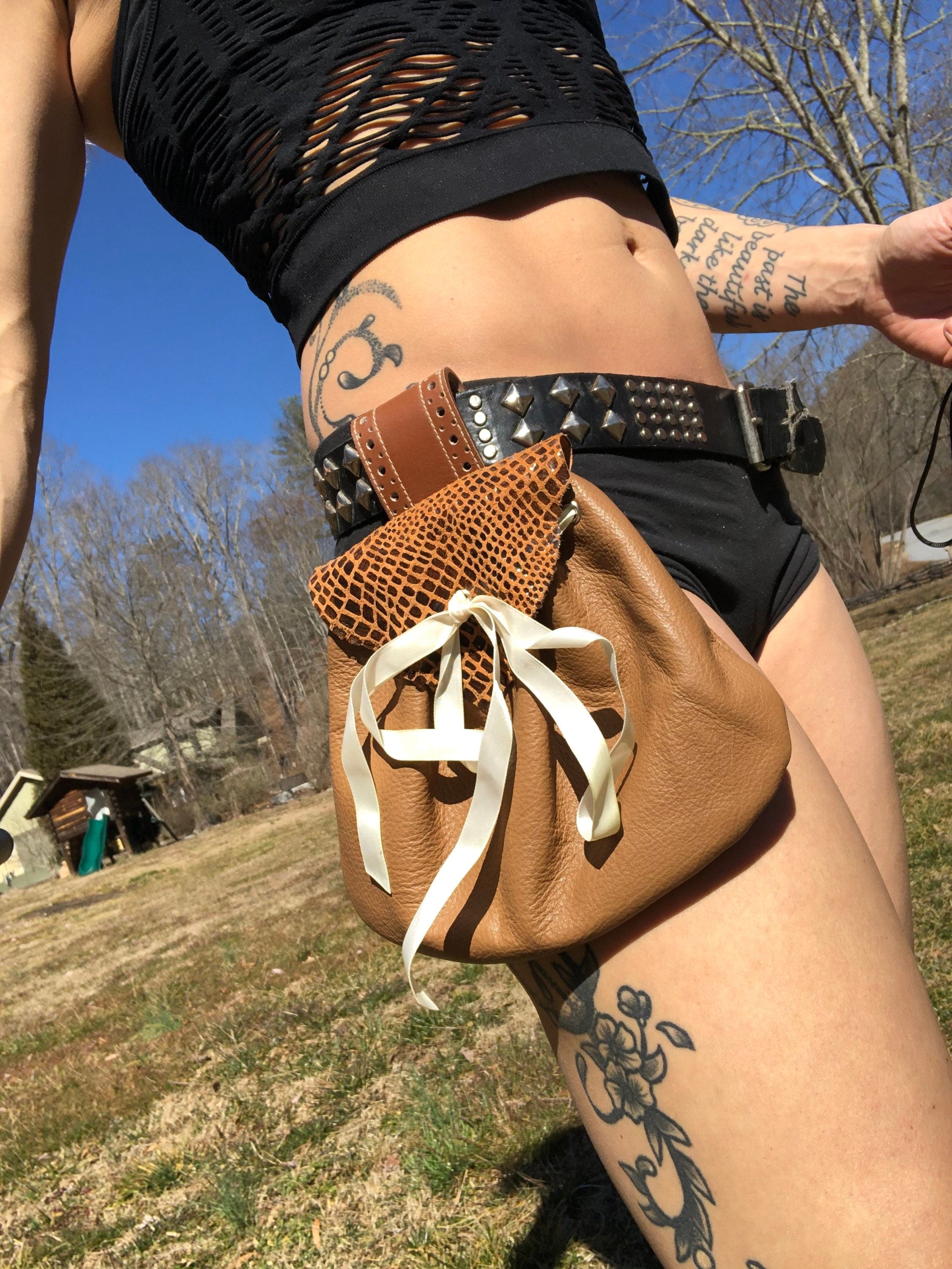 These fun leather pouches that just slide onto your exciting belt. They have a drawstring closure and are one big open space inside. Giving you plenty of room for the things you need to keep close. They are perfect bags to hold your tarot cards, crystals, herbs, phone, money, keys whatever!!
