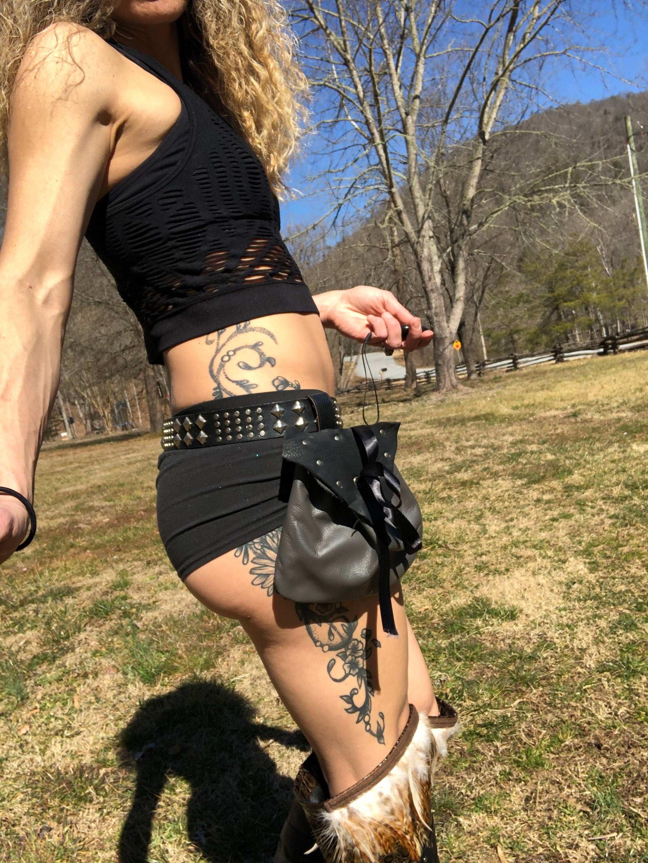 Gothic Leather Belt Bag, Small Utility Bag, Tarot Card Bag, Crystal Pouch, Money belt Bag