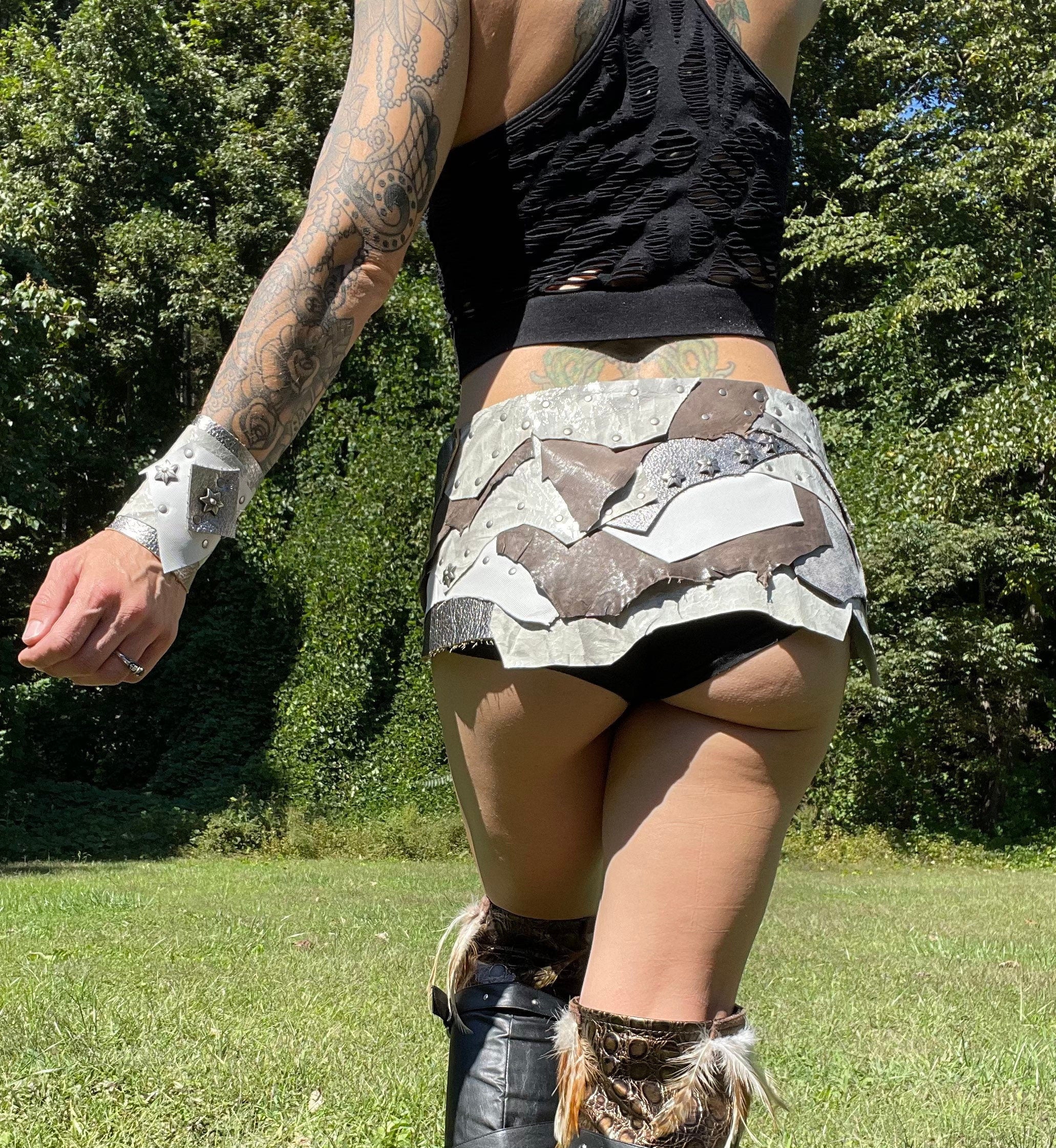 ECLIPSED, Silver Leather Skirt with Bracelet, Burning Man Skirt, Steampunk costume, Rave Costume, Viking Belt
